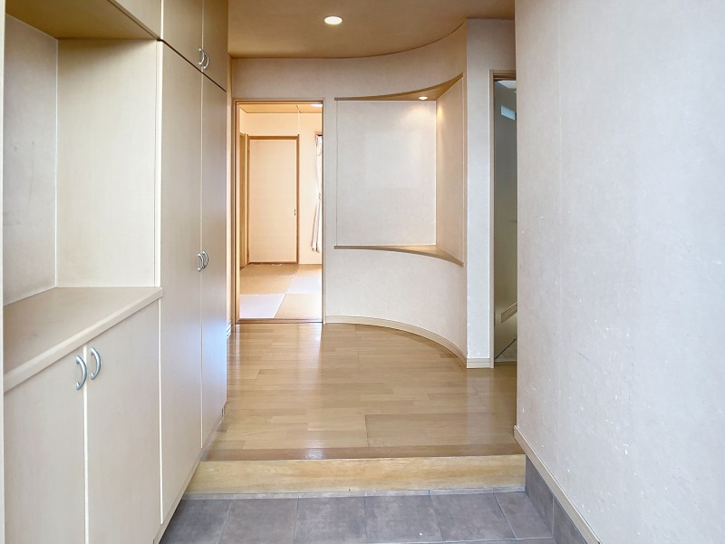 車通りも少なく静かな住宅地に位置します。リビング横の和室へは玄関から直接入ることができるので客間としても活用できるのは嬉しいポイント。
