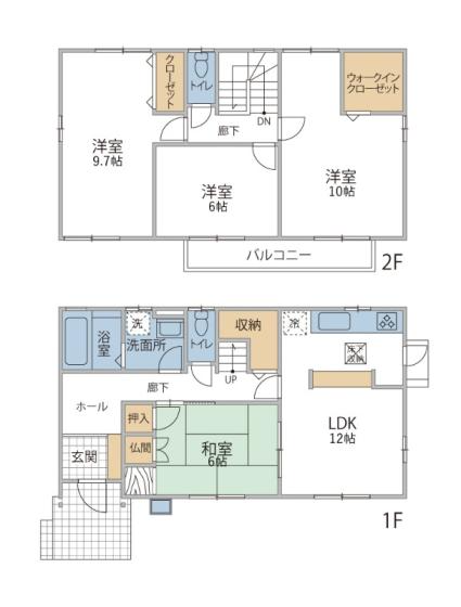 ・ゆとりの4LDK: 1階に和室、2階に洋室3部屋を備え、将来のワンフロア生活にも対応可能な間取りです 。