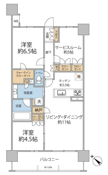 2021年築の築浅物件で、現代のライフスタイルに寄り添った「2LDK+サービスルーム」の間取り 。