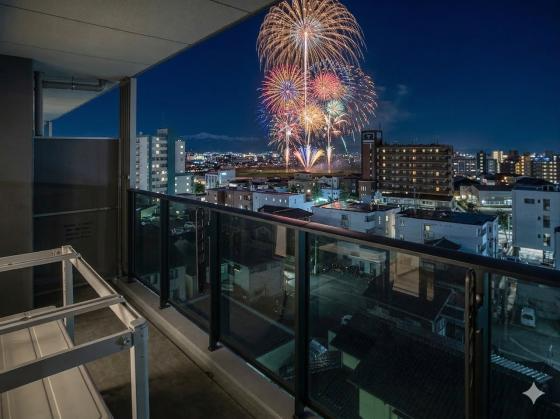 バルコニーからの特等席※画像内の花火は合成イメージです。